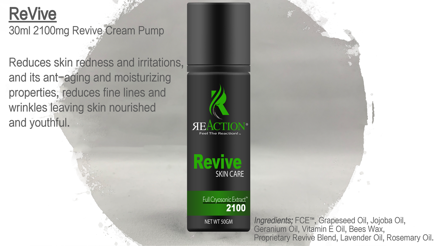 Ingredients: FCE™, Grapeseed Oil, Jojoba Oil, Geranium Oil, Vitamin E Oil, Bees Wax, Proprietary Revive Blend, Lavender Oil, Rosemary Oil